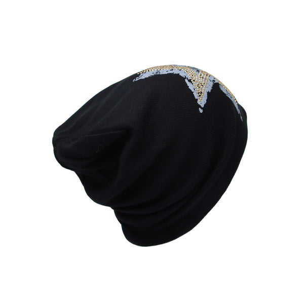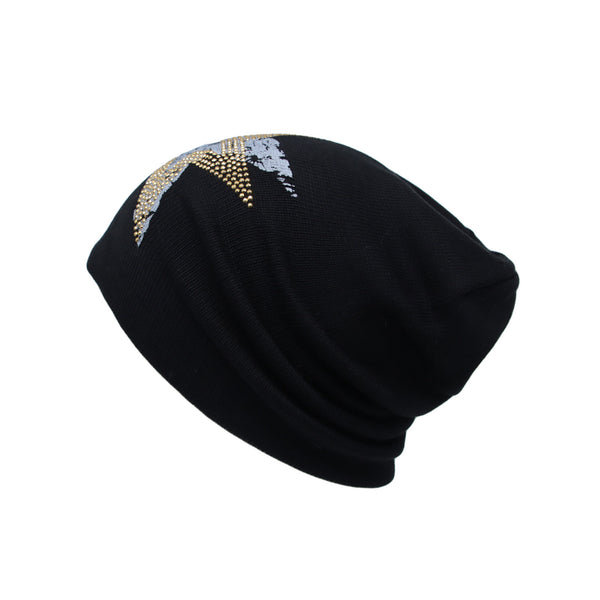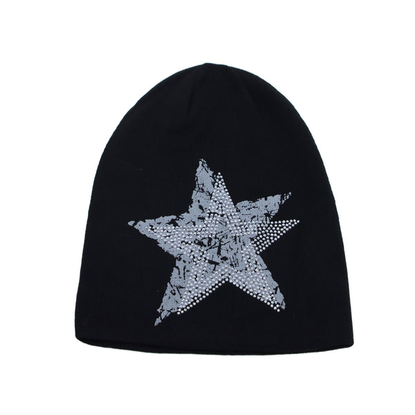 Cotton Knitted Beanie Hat Star Rhinestone Slouchy Skull Cap YT51353
