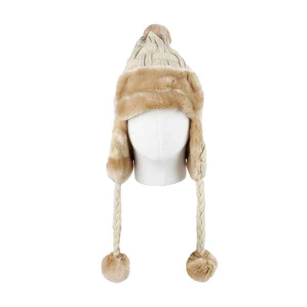 Fleece Lining Thick Cable Knit Beanie Hat Earflaps Cap FZ70022