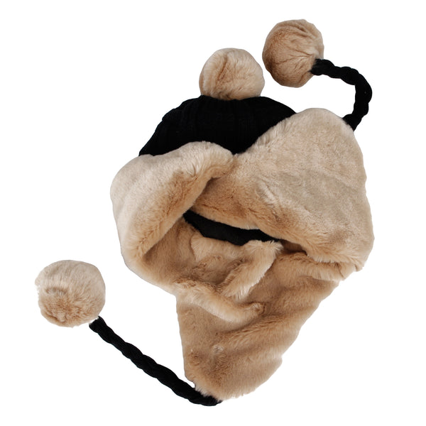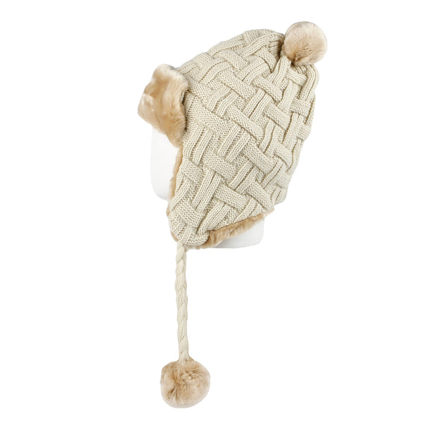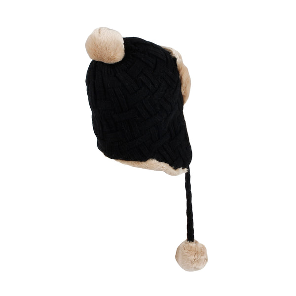 Winter Fleece Lining Soft Knit Beanie Hat Pom Earflaps YZ70080