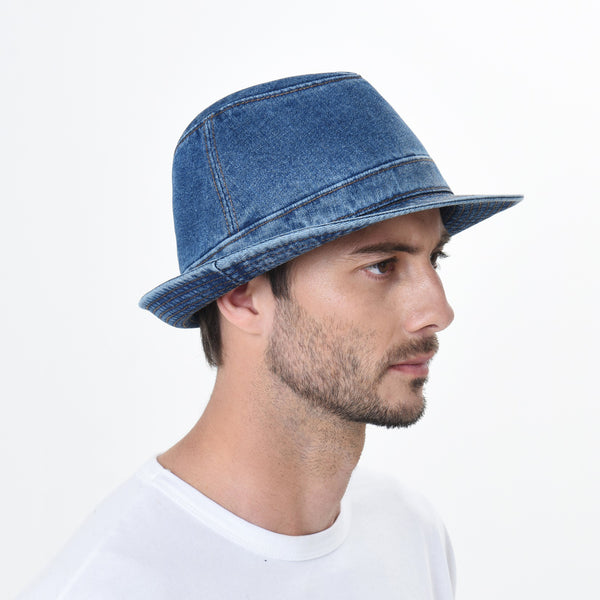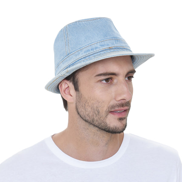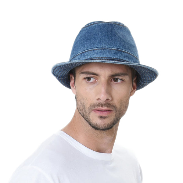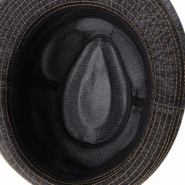 Denim Bucket Hat Plain Stitch Washed Short Brim Packable Fedora Cap DW6646