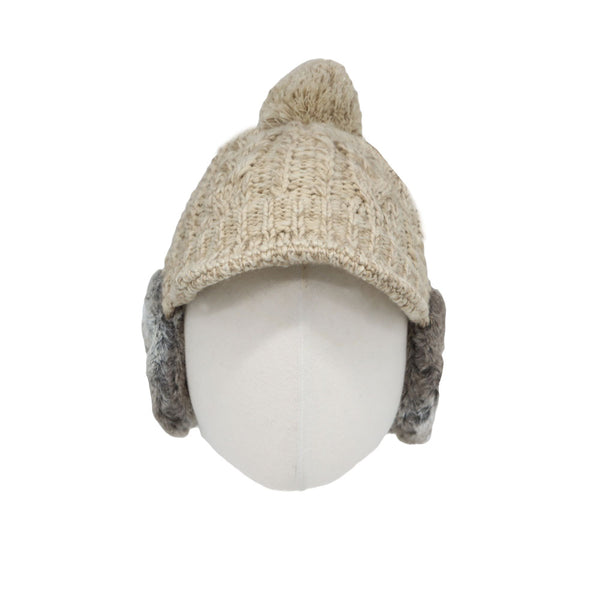 Winter Pom Knitted Cable Visor Earflaps Beanie Hat Mixed Color Skull Cap JDT1494