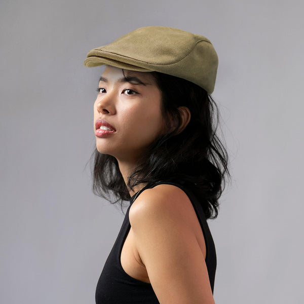 Ivy Flat Cap Faux Suede Newsboy Hat Gatsby Cabbie Hat Button Adjustable TG31581